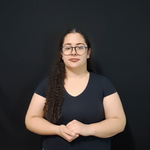 Ao lado esquerdo deste bloco de texto, está o sinal que se refere a este glossário. Da mesma forma, os demais termos presentes nesta página estarão organizados, contendo uma visualização do sinal sendo realizado, juntamente de um texto explicativo.